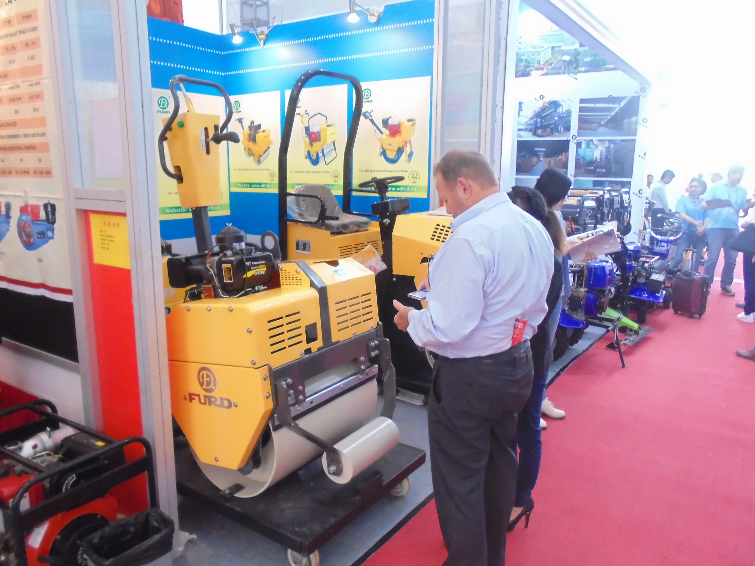 此次福瑞得準(zhǔn)備充分,5天內(nèi)接待眾多外商,現(xiàn)場(chǎng)異?;鸨槐姸嗫蜕唐毡閷?duì)我公司FYL-880壓路機(jī)表現(xiàn)出濃厚的興趣。