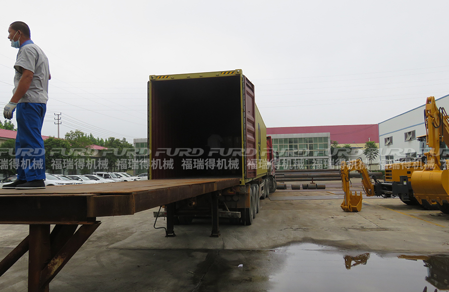 9月3日,福瑞得機(jī)械6臺手扶雙輪壓路機(jī)、和2臺9米移動燈車裝車出口非洲。