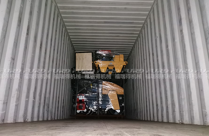 9月11日,福瑞得機械5臺手扶雙鋼輪壓路機和2臺座駕壓路機裝車出口印度。