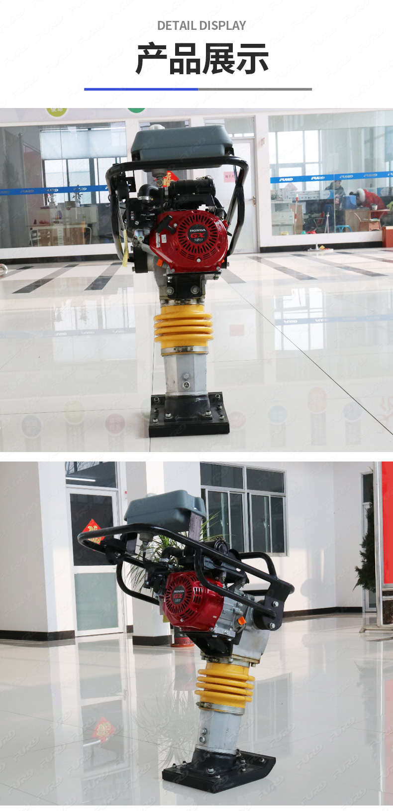 用于公路、市政、電信、煤氣、供水、鐵路等部門(mén)對(duì)工程基礎(chǔ)和溝槽回填土的夯實(shí)。