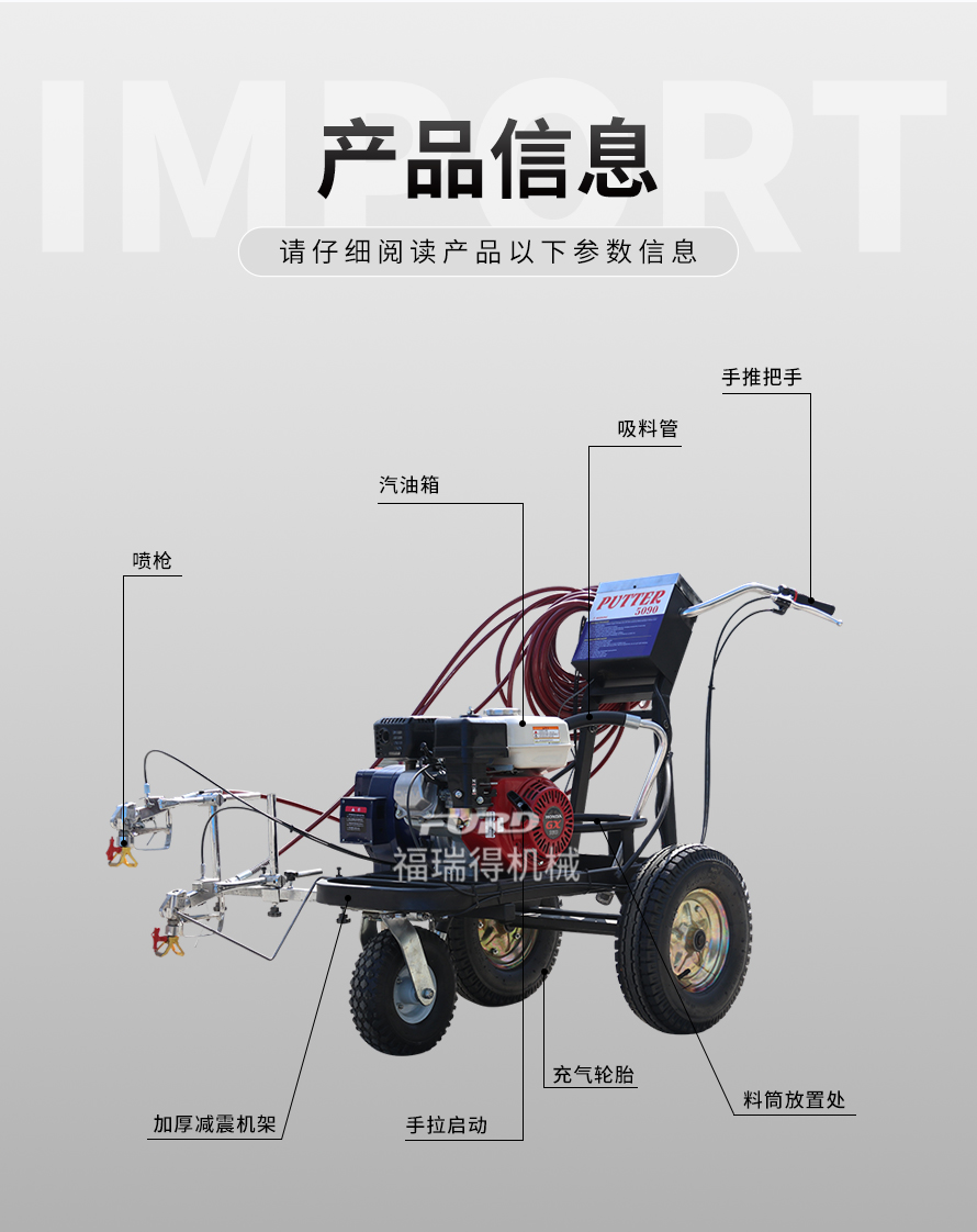 小型手推式道路劃線機(jī)是一種在道路、停車場、廣場和跑道等平整地面上劃出不同約束、指引和警示等規(guī)則限制標(biāo)志的路面施工機(jī)械。最常見的就是在馬路上劃斑馬線,在路上劃車庫線、停車線等等應(yīng)用于小型工程、短途施工,活動(dòng)方便,靈活操作。