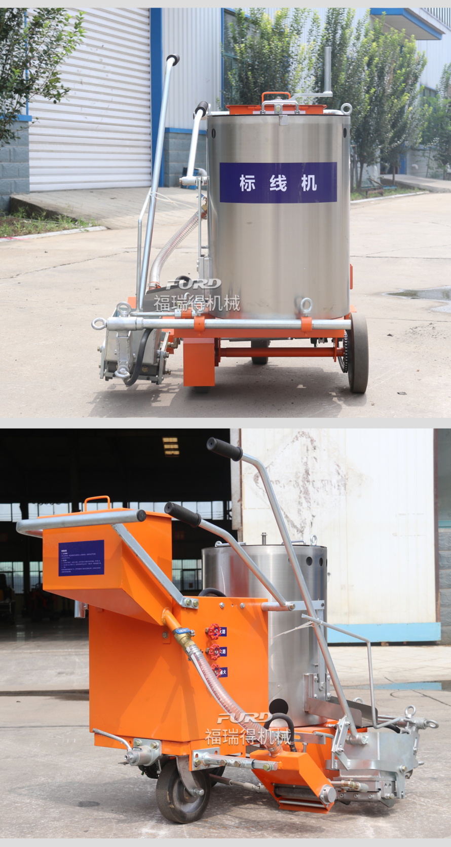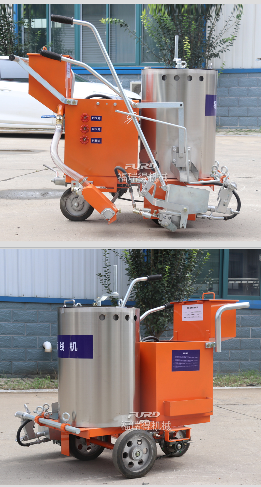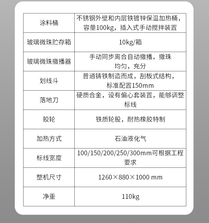 應(yīng)用于道路、高速公路、停車場、廣場和跑道的在平整地面上劃出不同約速、指引和警示等規(guī)則限制標(biāo)志的路面施工機(jī)械。