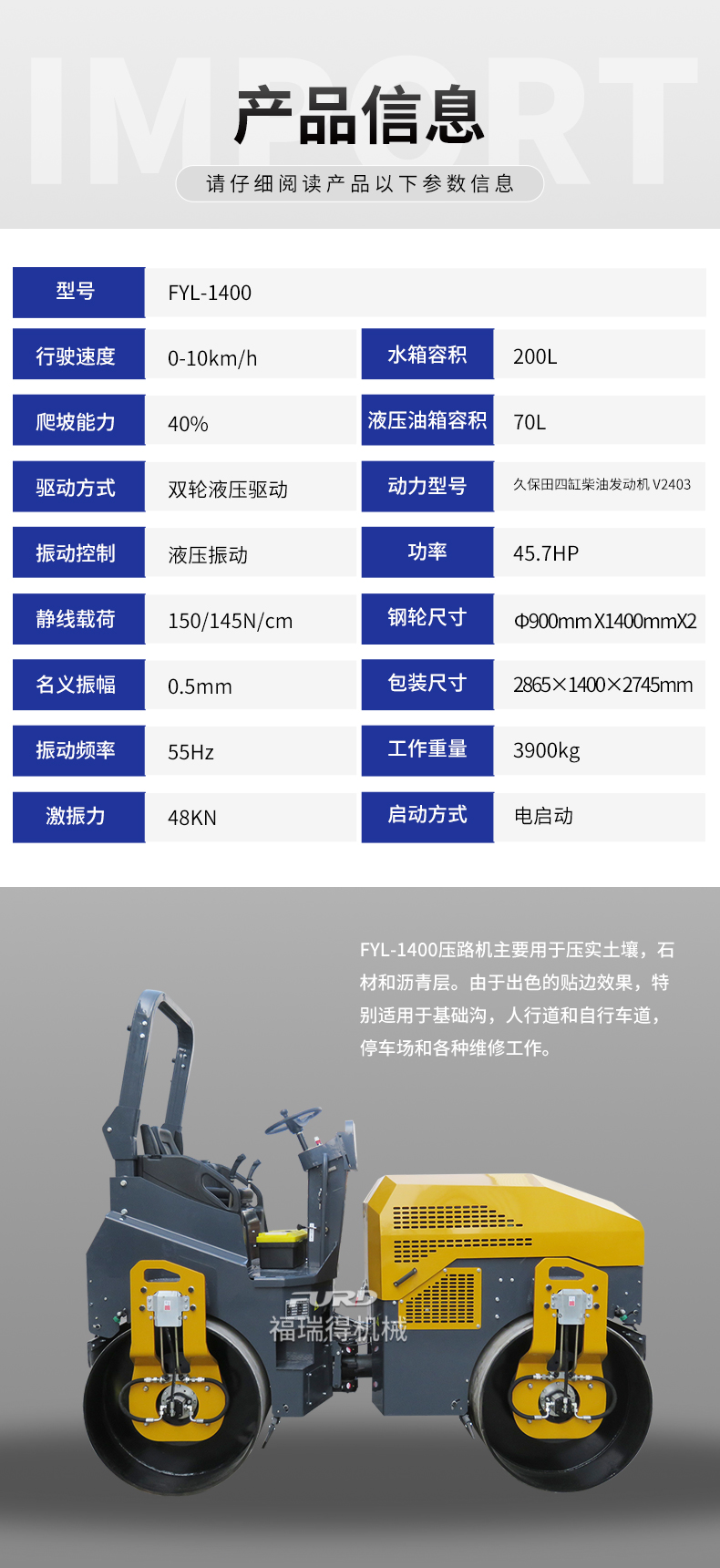 FYL-1400  4噸全液壓座駕雙鋼輪壓路機(jī)