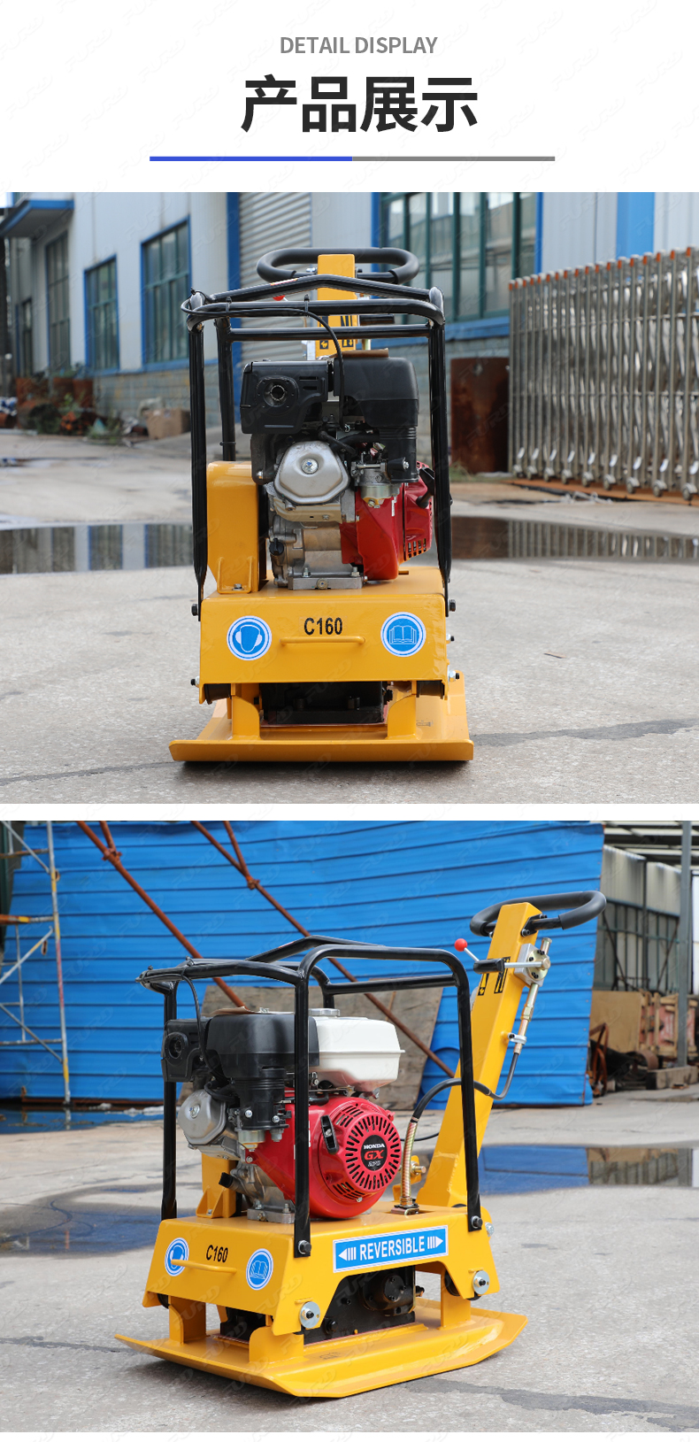 適用于路基邊緣、橋涵、管道、溝槽底部等狹長(zhǎng)地帶的壓實(shí)。 本田汽油動(dòng)力,名牌品質(zhì)保證。