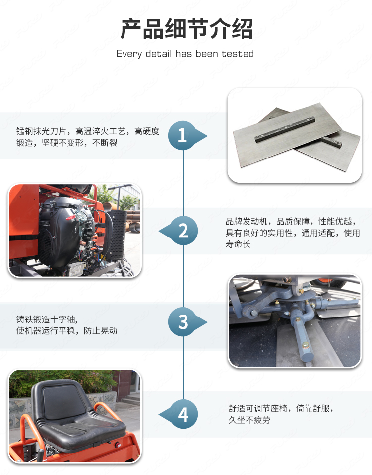 該機采用雙刀片,重量更重,對地面的壓實效果更好,比走后式動力泥鏟機效率更高。